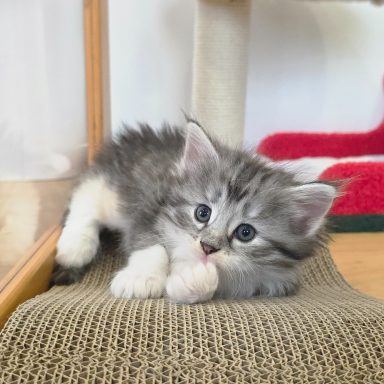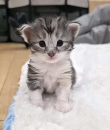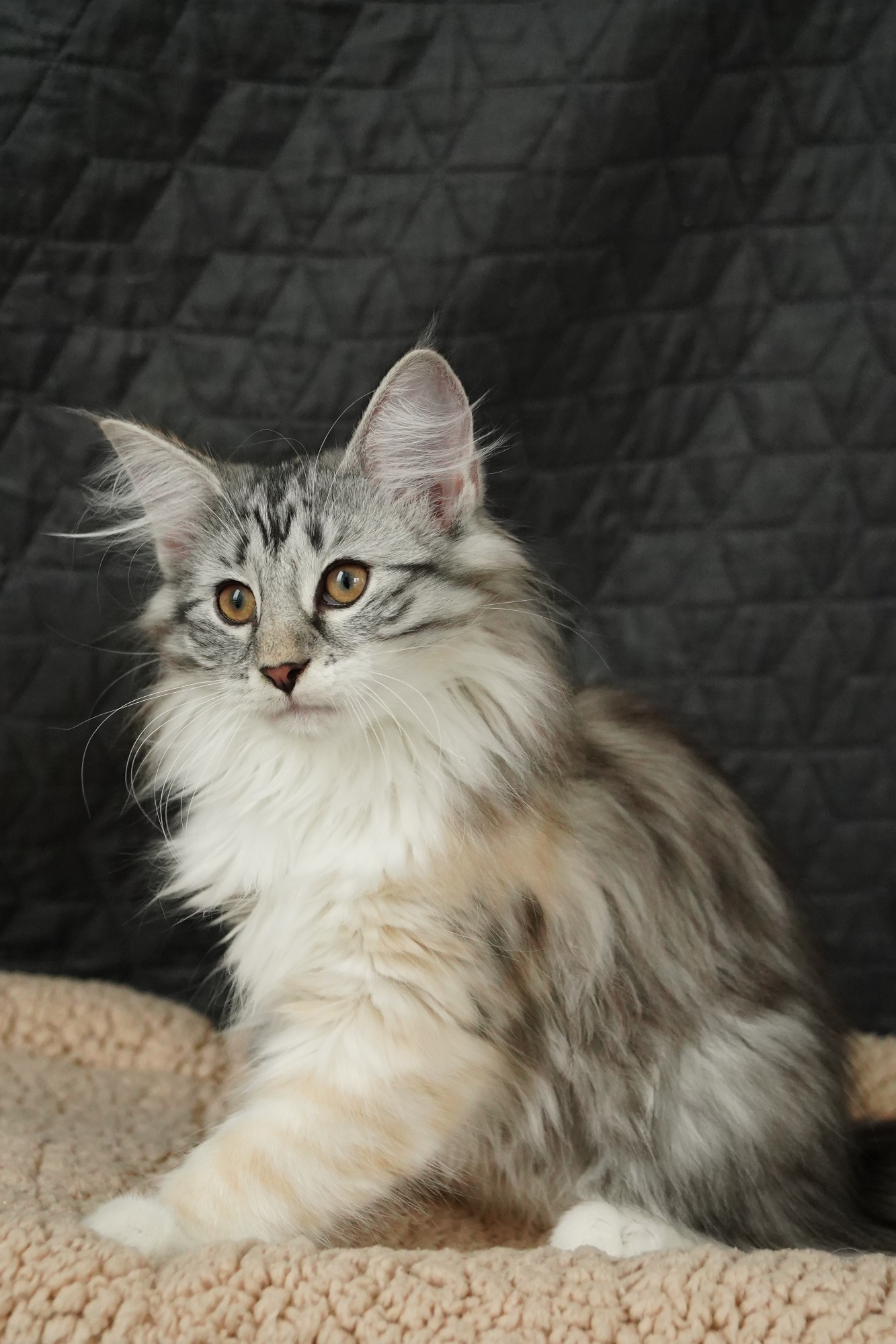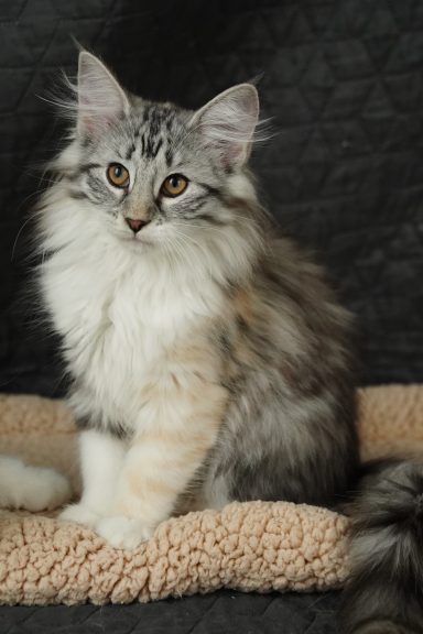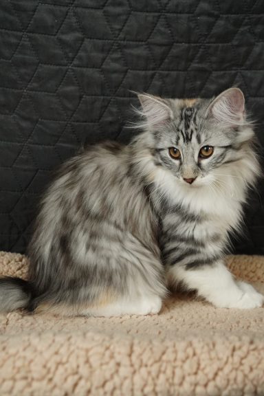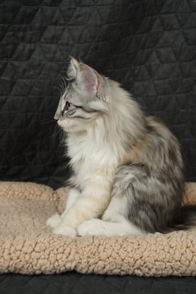 black-silver-tabby-mc-tortie-white (trägt Verdünnung, non-agouti und evtl. Amber)