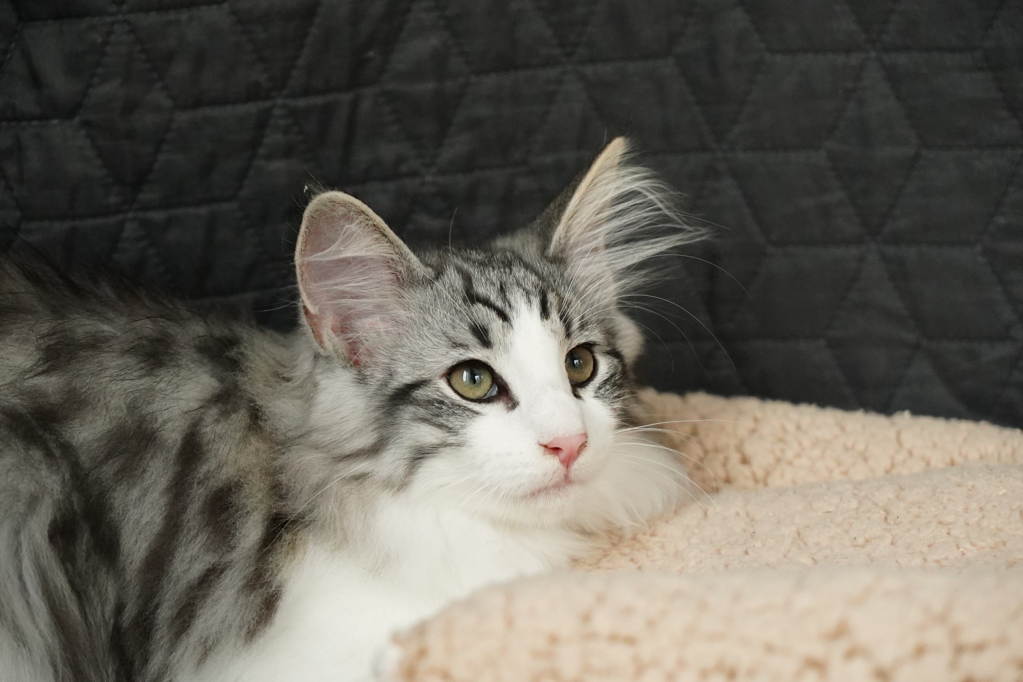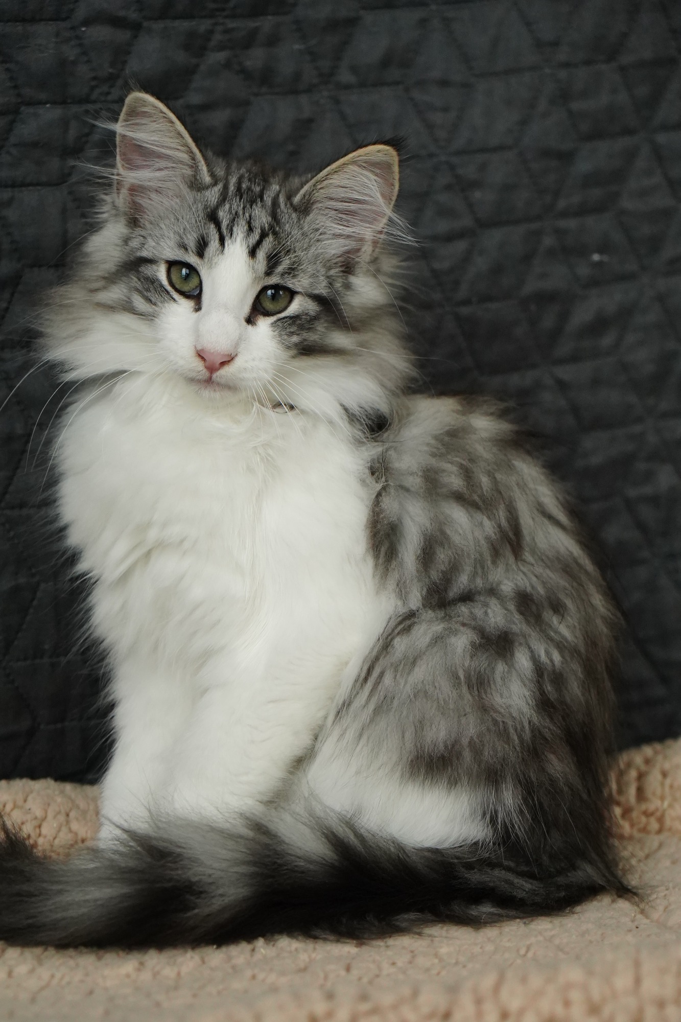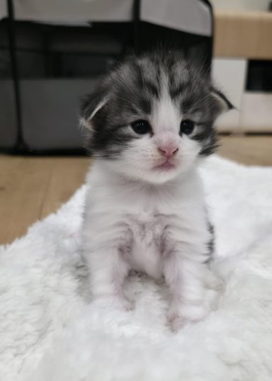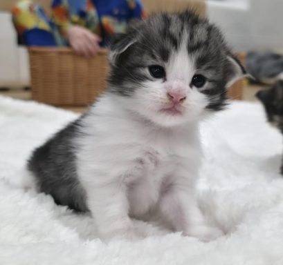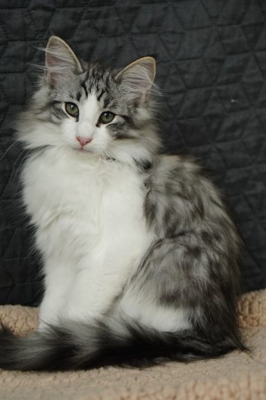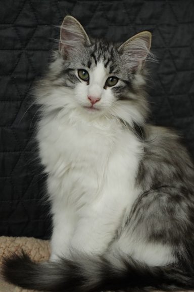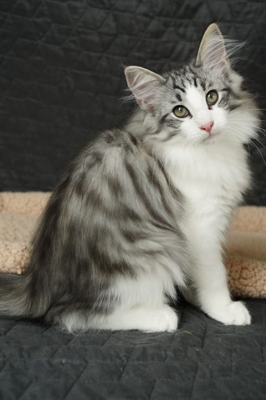 black-silver-tabby-classic-white (trägt Verdünnung, non-agouti und evtl. Amber)